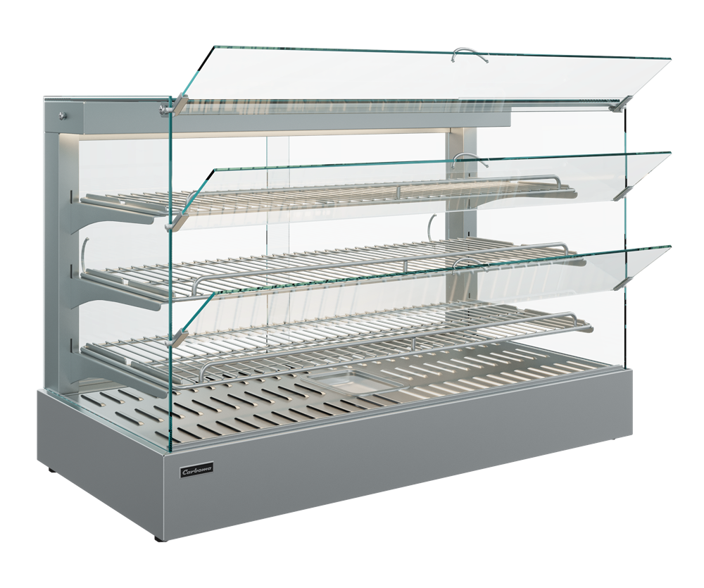 Профессиональные тепловые витрины с пароувлажнением (типа мармит) кубического дизайна для демонстрации горячей выпечки: пирогов и пиццы до Ø35 см