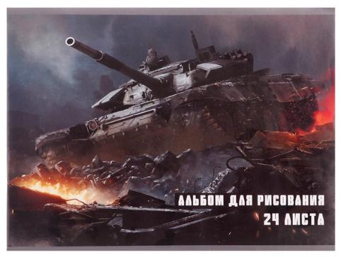 Альбом для рисования А4, 24 листа на скрепке "Танк", обложка мелованная бумага 120 г/м², внутренний блок офсет 100 г/м²