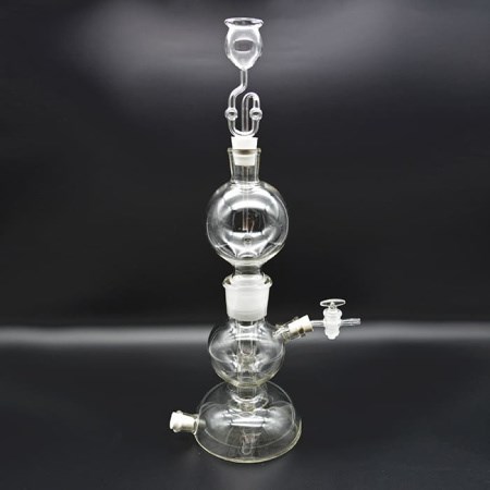 Аппарат Киппа на 250 мл — универсальный лабораторный прибор для получения газов в результате взаимодействия кислот и щелочей с твёрдыми веществами. Используется в учебных и исследовательских лабораториях для демонстрации химических реакций и практических опытов с газообразными веществами.