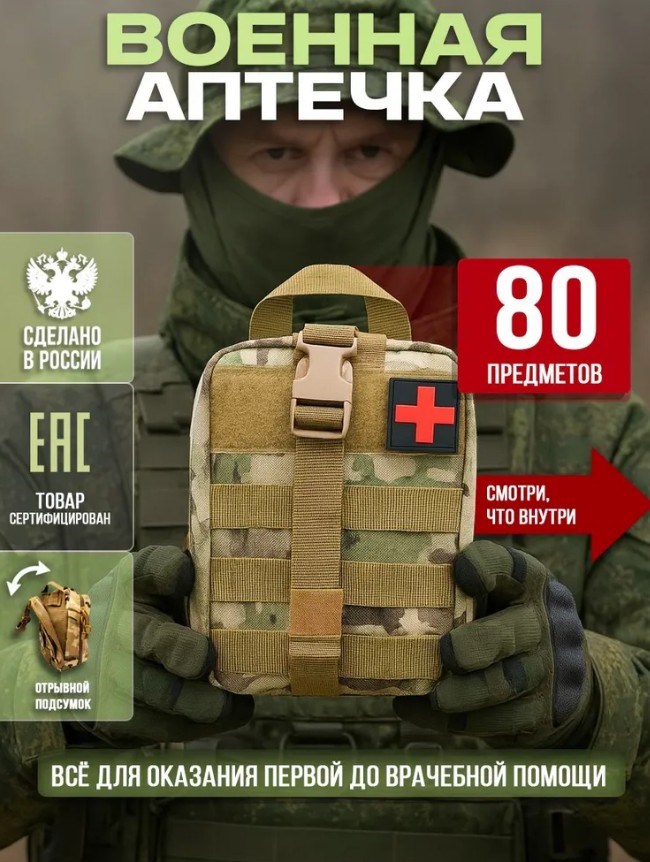 Аптечка тактическая укомплектованная индивидуальная с наполнением