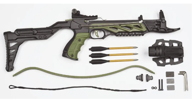 Корпус из прочного пластика делает арбалет легким и удобным в эксплуатации, а стильный зеленый цвет подчеркивает его оригинальный дизайн.