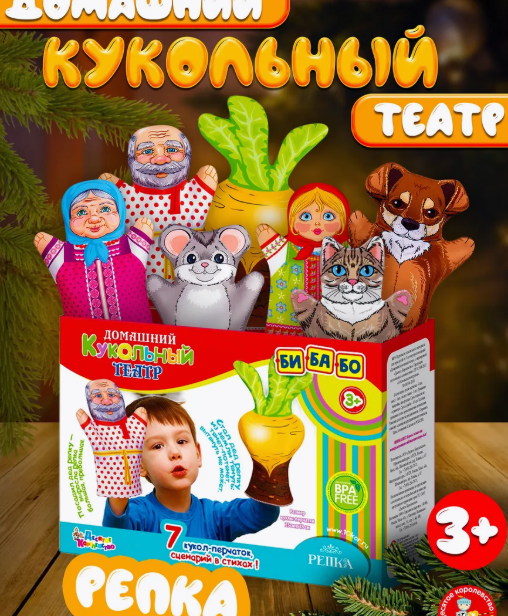 Бибабо Кукольный театр для детей "Репка" (7 кукол-перчаток)