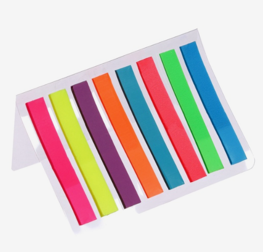 Блок - закладка с липким краем, 5×45 мм, пластик, 8 цветов по 21 листу, в блистере, МИКС
