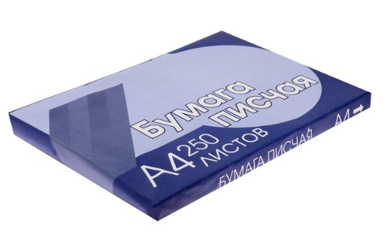 Бумага писчая А4, 250 листов, плотность 65 г/м2, белизна 94-96%