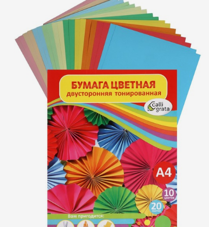 Бумага цветная двусторонняя А4, 20 листов, 10 цветов