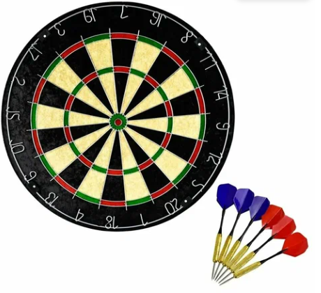 Материал мишени: сизаль (спрессованный волокна растения Агава)В комплекте 6 дротиков из латуни с никелированным покрытием и хвостиками из алюминия. Вес 1- го дротика 18 грамм. Уровень игры – полупрофессиональный Диаметр 18"(45см)Толщина мишени - 4см Упаковка: картонная коробка.