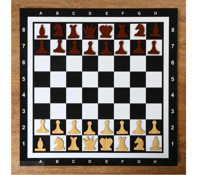 Лицевая сторона доски с нанесенным игровым шахматным полем размером 60 х 60 см.