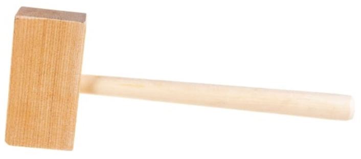 Боек выполнен из качественной древесины твердых пород, что обеспечивает его устойчивость к износу и механическим нагрузкам. Квадратная форма бойка (вес 0,5 кг) позволяет равномерно распределять усилие при ударах, предотвращая повреждение обрабатываемого материала.