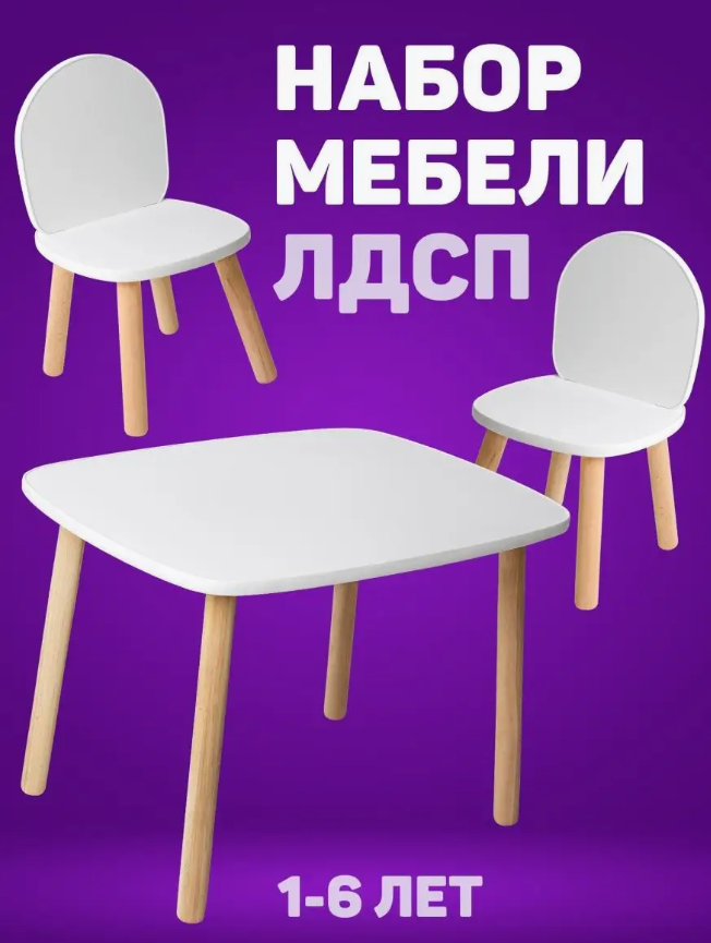 Стол классический прямоугольный - 1 шт; Стул классический - 2 шт
