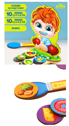 Если ребёнок засомневается и всё же поднесет на ложечке, например, носок, не торопитесь его останаливать: фишки несъедобного больше ротовой полости пупса, они просто туда не войдут. Это станет для ребёнка сигналом, что перед ним несъедобное.