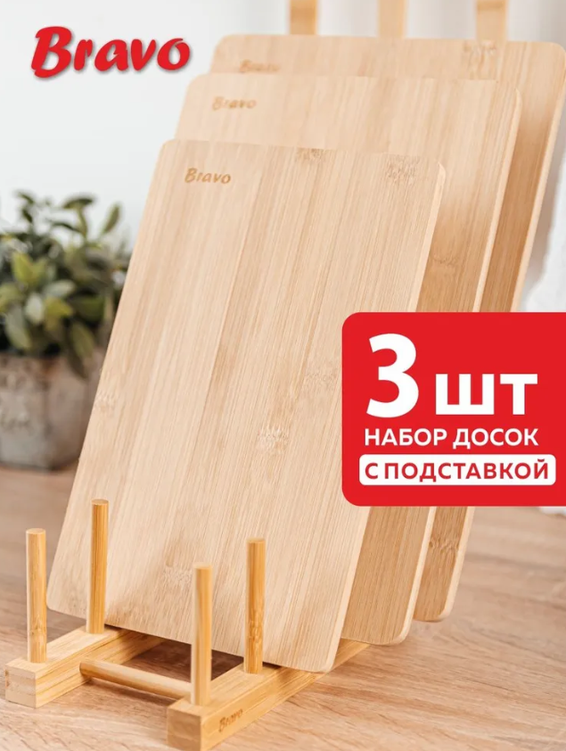 Доска разделочная набор 3шт. Bravo, с подставкой