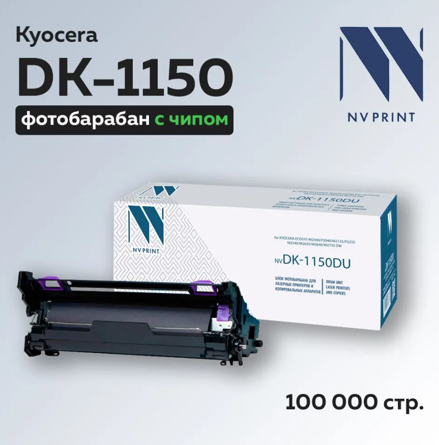 Фотобарабан (драм-картридж) для лазерного принтера NV Print DK-1150 (совместимый). Подходит для принтеров: Ecosys P2040dn, Ecosys M2040dn, Ecosys P2235dn, Ecosys P2235dw, Ecosys M2135dn, Ecosys M2635dn, Ecosys M2635dw, Ecosys M2735dw, Ecosys M2235dn, Ecosys M2735dn, Ecosys M2735d