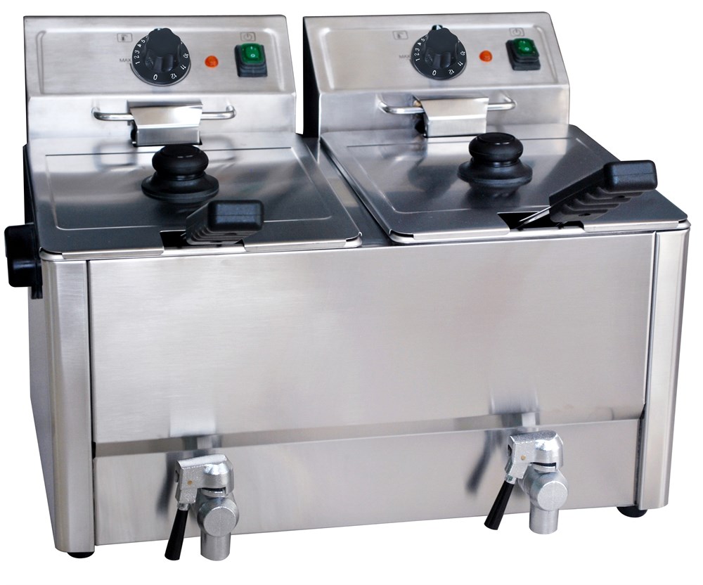Фритюрница HDF8+8 предназначена для приготовления блюд в большом объёме масла на предприятиях общественного питания и торговли. Две ванны по 8л каждая. Размер ванны 300х240х200мм. Длина ручки 240мм.