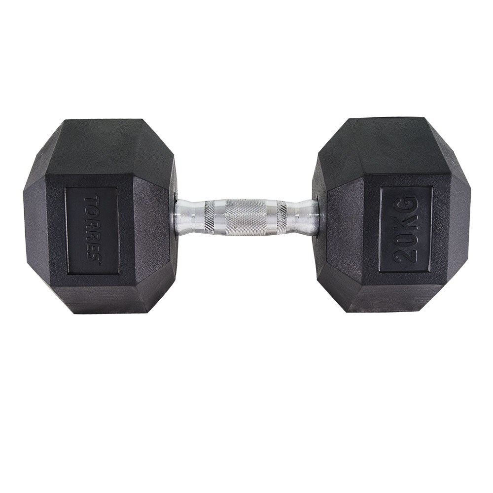 Металлическая ручка с насечками имеет эргономическую форму, что обеспечивает прекрасный захват и предотвращает выскальзывание даже при самых активных тренировках. Литая (не наборная) конструкция обрезиненных дисков-шестигранников, делает снаряд более стабильным. Форма шестигранника обеспечивает хорошую устойчивость на полу, предотвращает перекатывание гантелей, а так же делает возможным и нужным использование этих гантелей как упоров для отжимания.