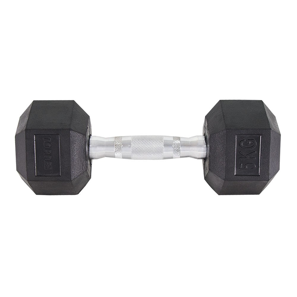 Гантель металлическая TORRES в резиновой оболочке 5 кг.