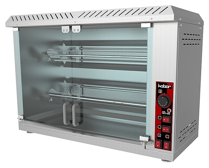 Гриль для кур Кобор GC1-2S используется на предприятиях общественного питания и торговли для жарки целых тушек цыплят, грудок, окорочков и других продуктов. Модель оснащена стеклянными дверцами, внутренней подсветкой, съемным поддоном и регулируемыми по высоте ножками. Корпус выполнен полностью из нержавеющей стали.