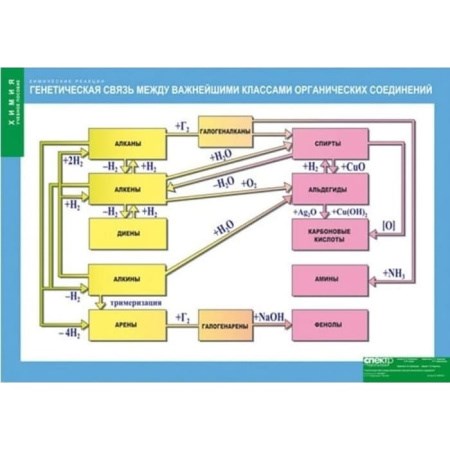 Генетическая связь между важнейшими классами органических соединений, 100х140 см, (Таблица, винил. Химия) В7-8848-001