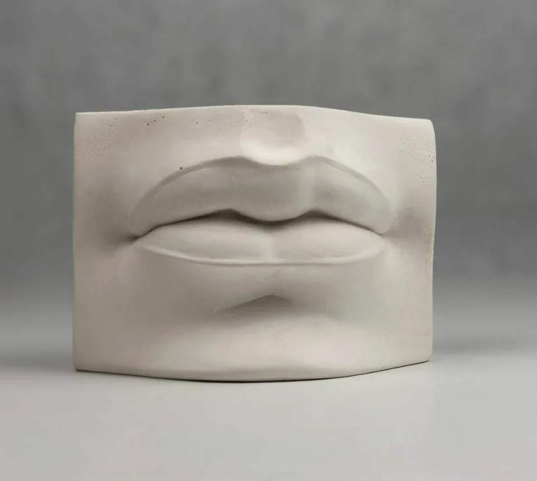 Представляет собой увеличенную модель человеческих губ на устойчивой подставке с дополнительной петлей для крепления на классной доске. Модель выполнена из гипса, не окрашена.