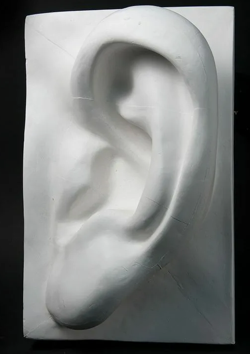 Представляет собой увеличенную модель человеческого уха с петлей для крепления на классной доске. Модель выполнена из гипса, не окрашена.