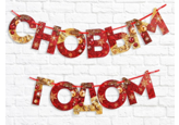 Гирлянда на ленте «С новым годом», красно/золотая, 130 см