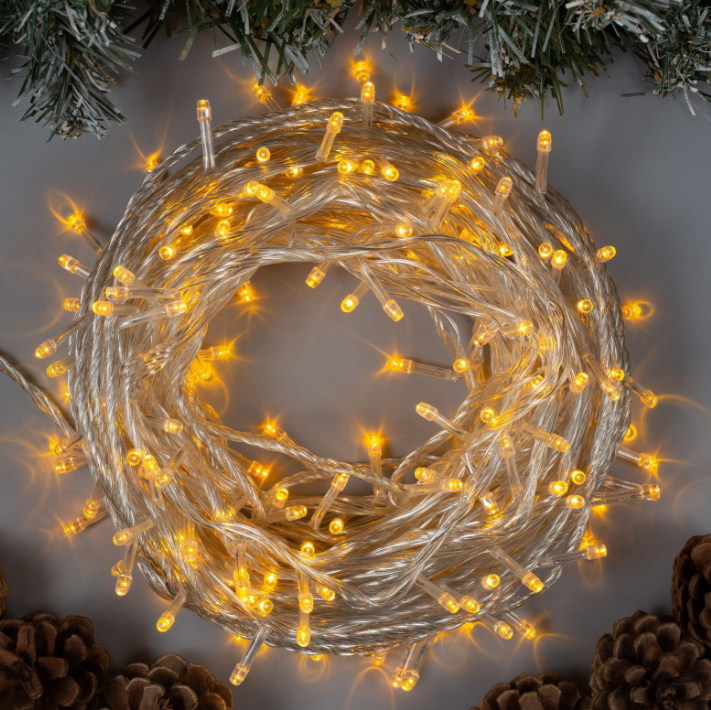 Гирлянда «Нить» 20 м, IP20, прозрачная нить, 200 LED, свечение жёлтое, 8 режимов, 220 В