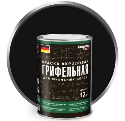 Фасовка — металлическая банка, обеспечивающая сохранность состава до момента использования. Грифельная краска Farbitex сочетает в себе практичность, долговечность и простоту применения. Чтобы создать удобную и стильную пишущую поверхность в школе, дома или в офисе, можно купить грифельную краску Farbitex — надёжное решение для учебных и интерьерных задач.