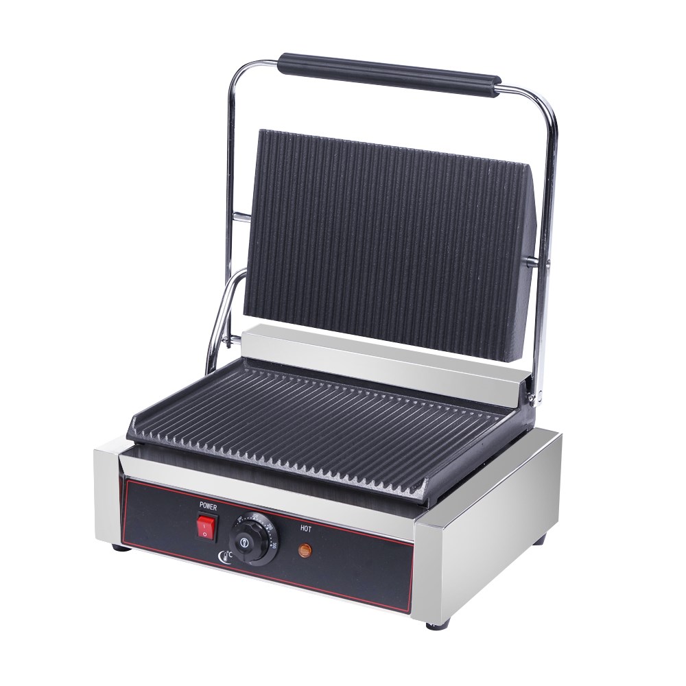 Контактный гриль Rosso HEG-811E предназначен для жарки мяса, рыбы, птицы, овощей, бутербродов и сэндвичей на предприятиях общественного питания и торговли. Модель оснащена терморегулятором. Корпус выполнен из нержавеющей стали.