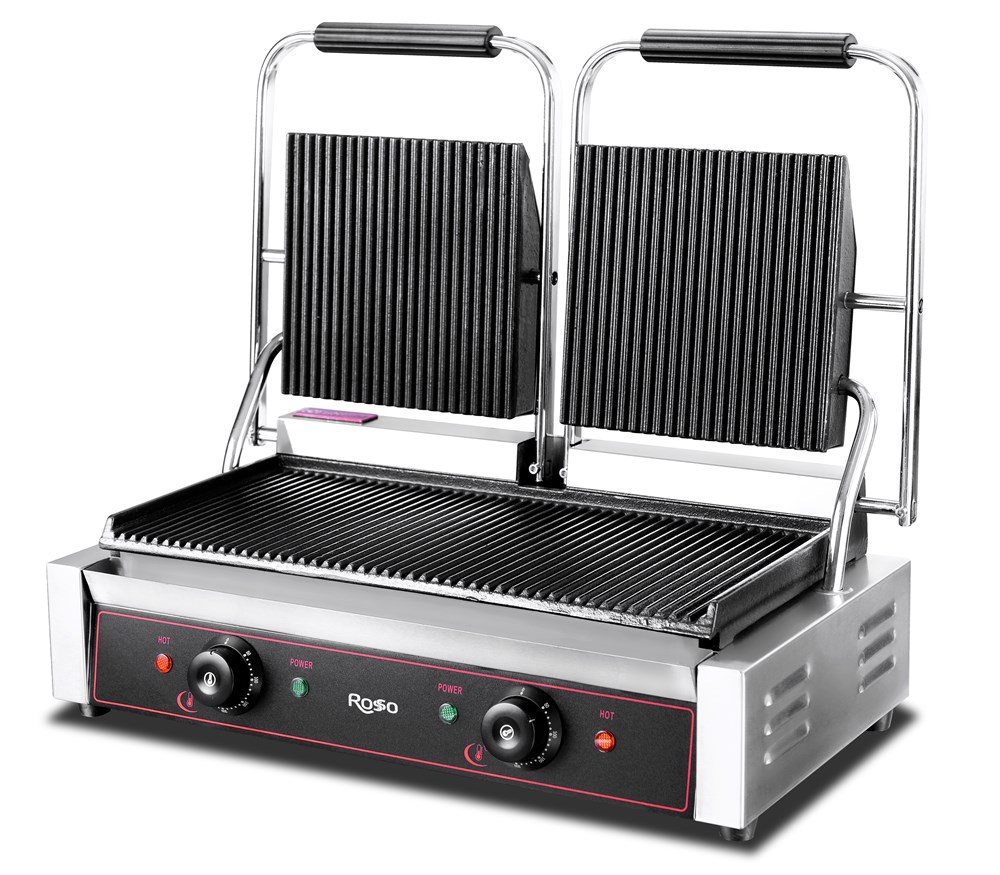 Корпус из нержавеющей стали. Поверхность нагрева — рифлёная. Температурный режим 0…300°С. размер зоны нагрева: низ их 2 частей 480*230*90мм, верх (из 2 частей): каждая часть 223*230*90мм