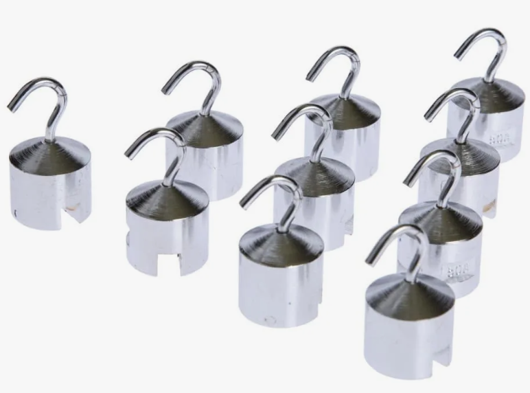 Груз стальной 100г из лабораторного комплекта «Механика». Груз выполнен с 2мя крючками с обоих плоских сторон оснований. Крючок точно подходит для закрепления в каретке.