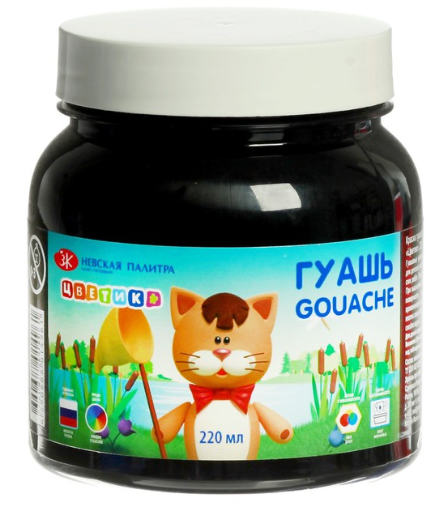 Гуашь в банке 220 мл, ЗХК "Цветик" чёрная