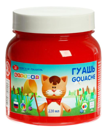 Гуашь в банке 220 мл, ЗХК "Цветик" красная