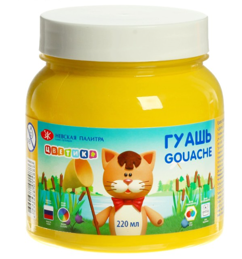 Гуашь в банке 220 мл, ЗХК "Цветик" жёлтая