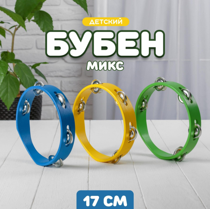 Игрушка музыкальная «Бубен» простой средний МИКС