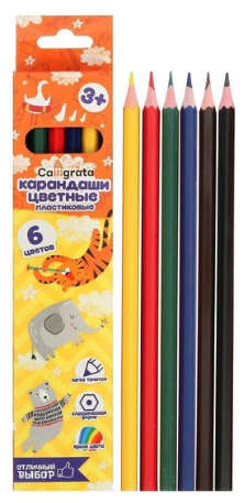 Карандаши 6 цветов Calligrata, ЭКОНОМ, заточенные, шестигранные, пластиковые, картонная упаковка, европодвес