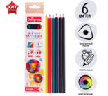 Карандаши 6 цветов Calligrata, заточенные, трехгранные, пластиковые, эконом, картонная упаковка, европодвес