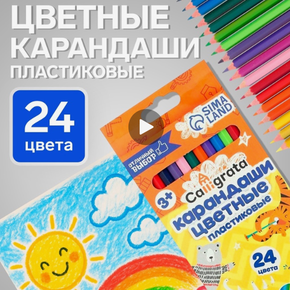 Карандаши Calligrata, цветные, 24 цвета, эконом, шестигранные, пластиковые