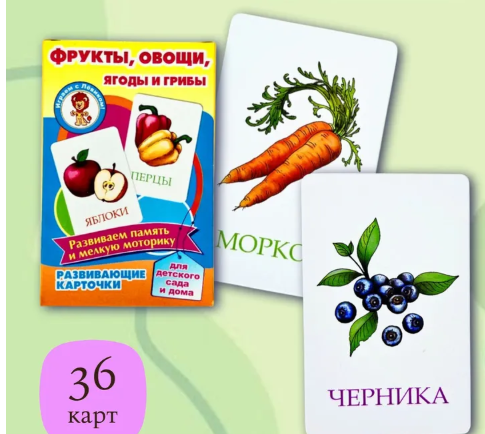 Карточки для детей развивающие Учим новые слова Фрукты овощи