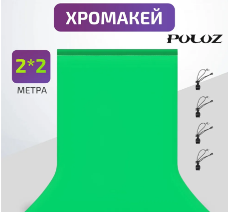 Хромакей, фотофон, фон для фото Puluz, 2х2 метра, зелёный