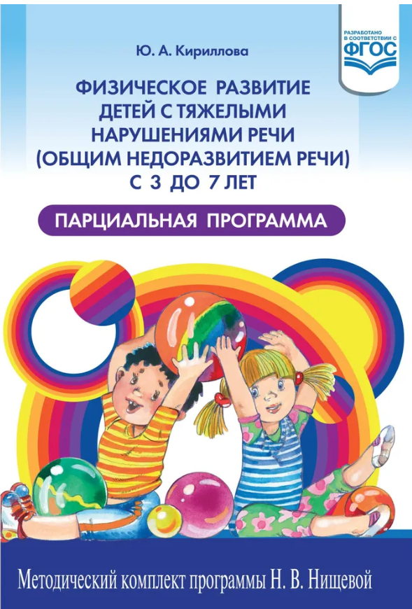 Кириллова Ю. А. Физическое развитие детей с тяжелыми нарушениями речи (общим недоразвитием речи) с 3 до 7 лет. Парциальная программа. — СПб., ДЕТСТВО-ПРЕСС, 2020.
