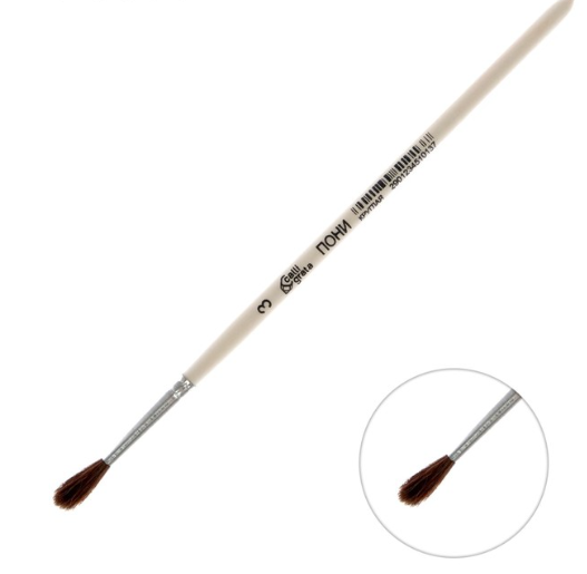 Кисть Пони круглая № 3 (диаметр обоймы 3 мм; длина волоса 16 мм), деревянная ручка, Calligrata