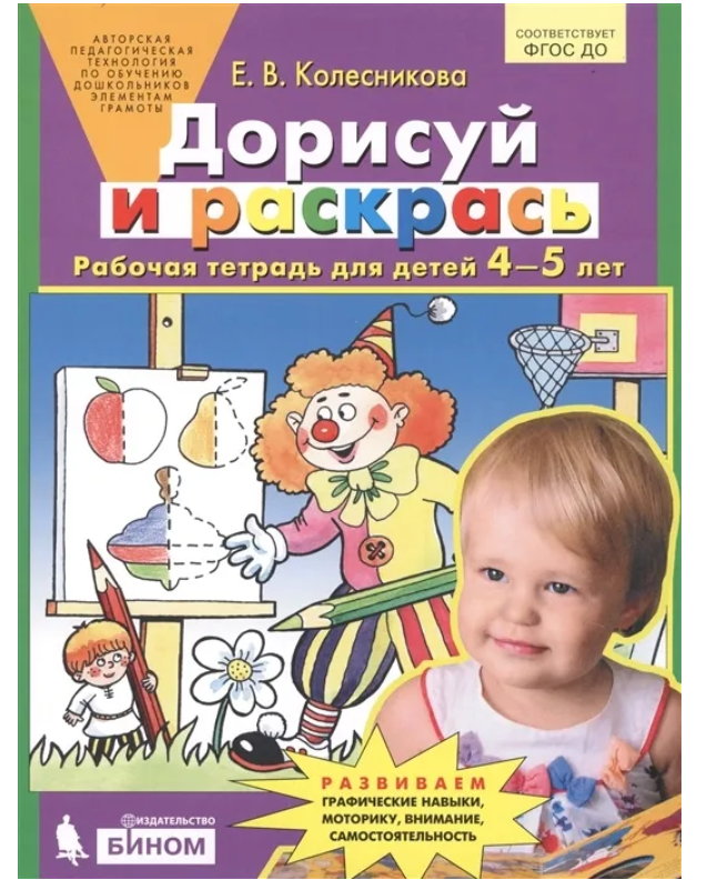Колесникова. Дорисуй и раскрась Рабочая тетрадь для детей 4-5 лет. | Колесникова Елена Владимировна