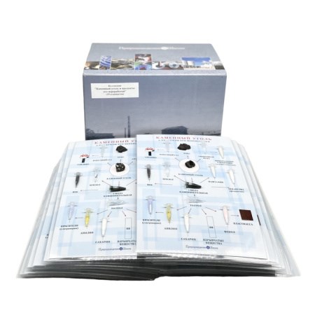 На каждом планшете размещены 14 пробирок с продуктами переработки каменного угля и два натуральных образца – каменный уголь и кокс.