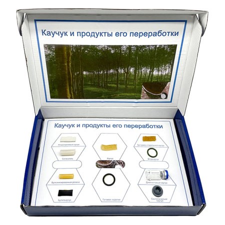 Коллекция "Каучук" демонстрационная предназначена для использования в общеобразовательных учреждениях на уроках химии. Образцы коллекции предназначены для ознакомления учащихся с внешним видом различных каучуков, для сравнения эластичности образцов, их плотности, цвета и других свойств.