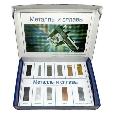 Коллекция "Металлы и сплавы" демонстрационная предназначена для использования в качестве демонстрационного материала на уроках химии в средней школе.