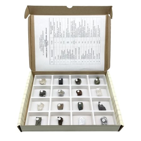 Коллекция Минералы и горные породы (50 видов) предназначена для использования в общеобразовательных учреждениях в качестве демонстрационного материала на уроках химии, географии, природоведения и для кружковой работы. В коллекции представлены 50 видов образцов горных пород и минералов, наиболееpаспространенных в природе.