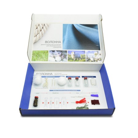 Описание. Коллекция размещается в практичном картонном боксе. Ее удобно хранить и использовать на занятиях. Волокна структурированы по типу, что позволяет наглядно представить типы волокон и тканей.