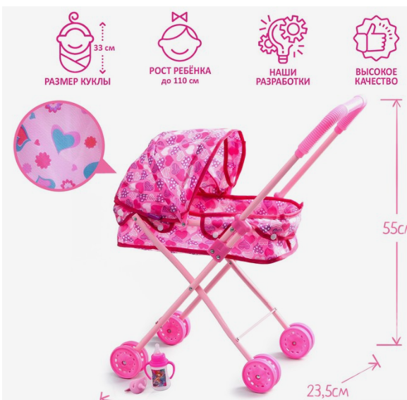 Коляска для куклы прогулочная с аксессуарами, WINX, металл
