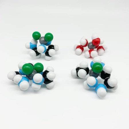 Комплект изготовлен в виде ярких пластиковых шариков и гибких пластиковых связей и позволяет демонстрировать: