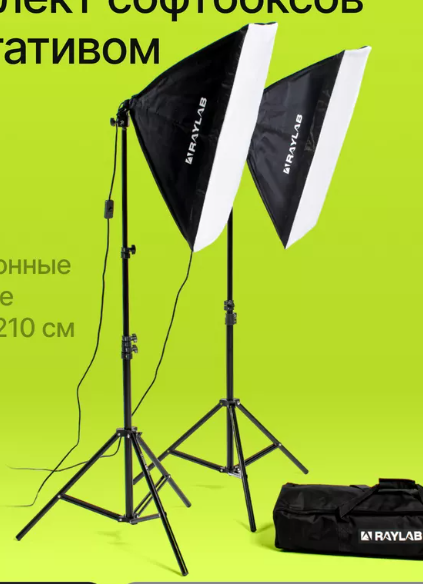 Комплект постоянного света, 2 софтбокса с лампами и штативом