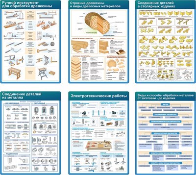 Комплект стендов в кабинет технологии для мальчиков 800 х 1100 пластик 3мм (в комплекте 6шт.)